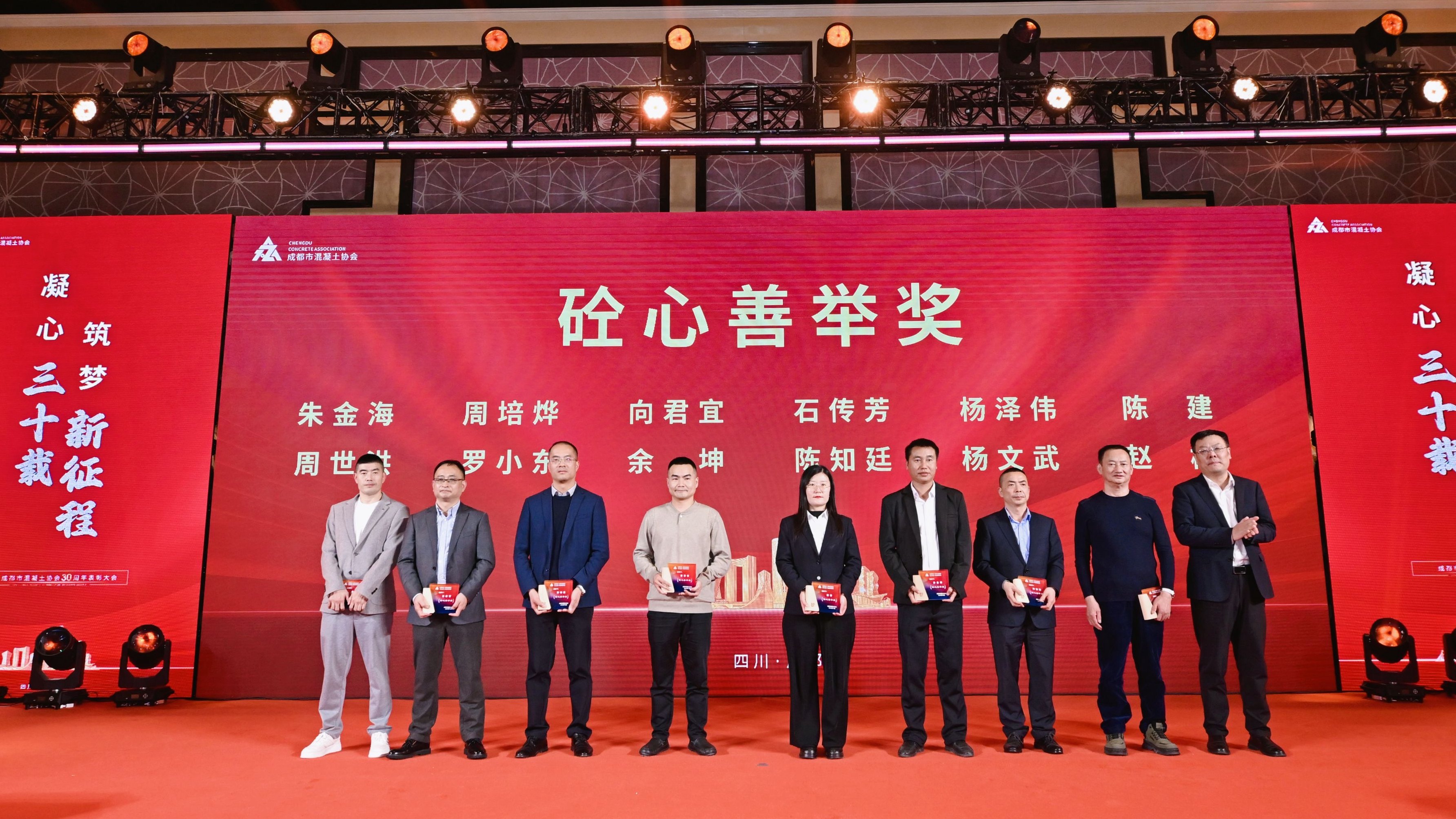 致敬三十年如一日深耕混凝土行业的坚守者,我们用青春与热血浇筑行业根基,以执着与热爱诠释砼心永恒。公司吴逸云、杜林海、彭志军、张云峰、杨清松、邓玉金、钟名席7位同仁荣获“卅载砼心奖”殊荣。