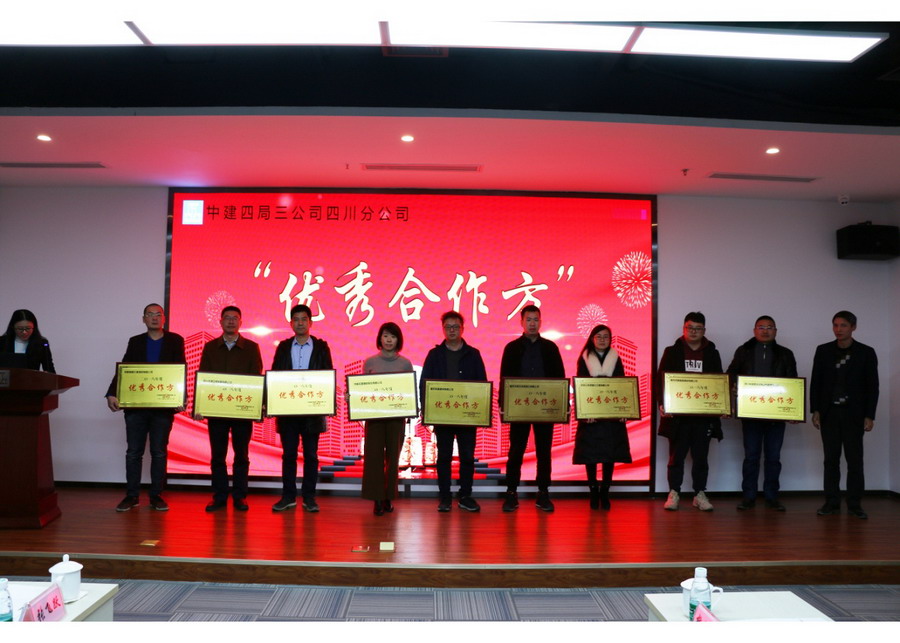 2019年1月5日,中建四局三公司年度“分包供商座谈会”隆重举行。经该公司物资部、生产部、工程部等多个部门评分,成都宏基建材股份有限公司荣获“优秀合作方”的荣誉,成为唯一获得此荣誉的混凝土供应商。销售总监杨宗余女士受邀代表公司参会并授奖。