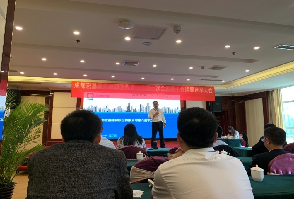 秋高气爽艳阳照,金桂飘香红旗飘。9月27日,根据职代会章程的要求及有关规定,成都宏基第六届职工代表大会第一次会议暨工会委员换届选举大会在丽天大酒店隆重举行,公司常务副总裁兼党支部书记周世洪同志、助理总裁曾晶女士、助理总裁沈娟女士、工会主席肖斌武同志、副主席魏刚同志、王定学同志以及特邀嘉宾EHS管理部鲍强、人力资源部副经理张蕾出席了此次会议。