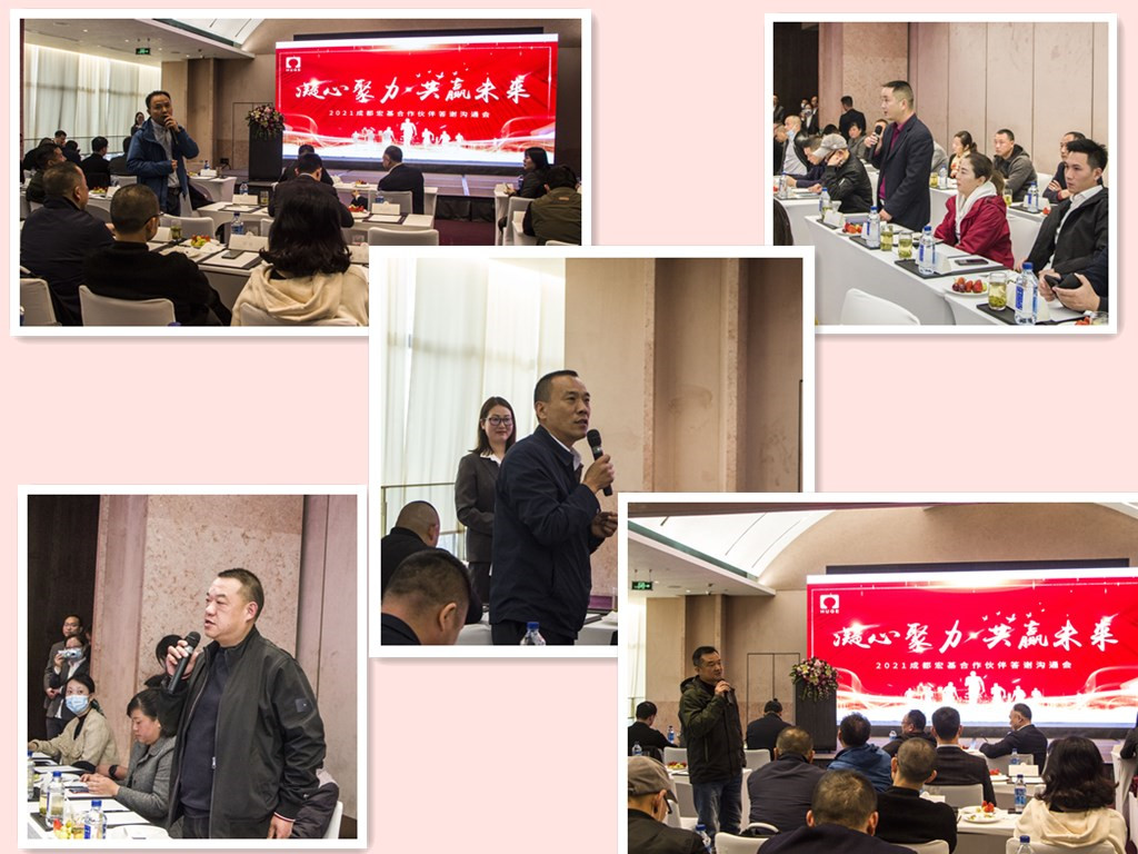 2021325日,成都宏基合作伙伴答谢沟通会在凯宾斯基酒店举行。公司董事长兼总裁吴逸云先生携高管团队、物资、生产系统同事出席,近七十位供应、服务合作伙伴应邀赴会。