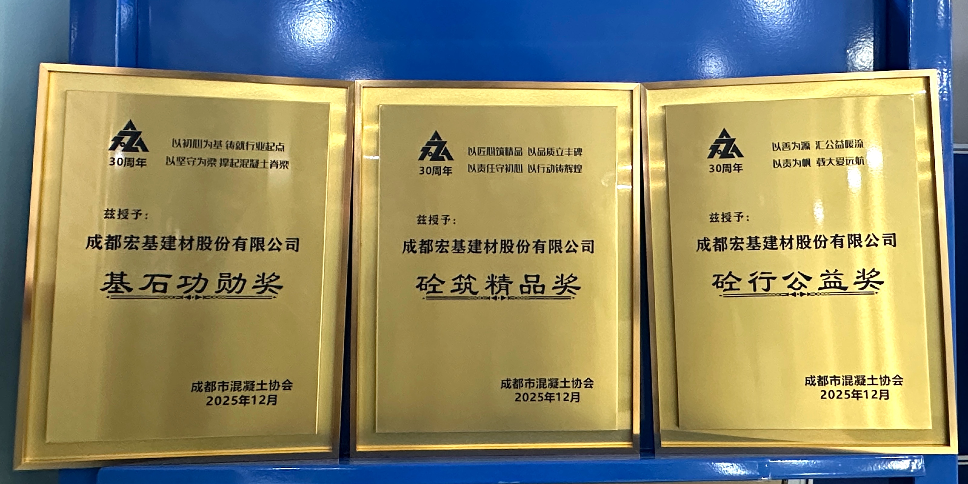 从1997年成都宏基荣获市混凝土协会颁发的“先进企业”称号至2025年公司再获“基石功勋奖”。这一奖项,不仅铭刻着公司作为城市建设者的品质初心与奋斗起点,也见证着从早期工厂到智能制造的跨越发展。