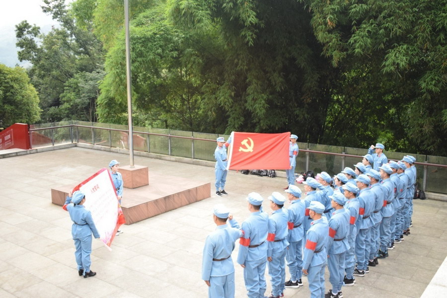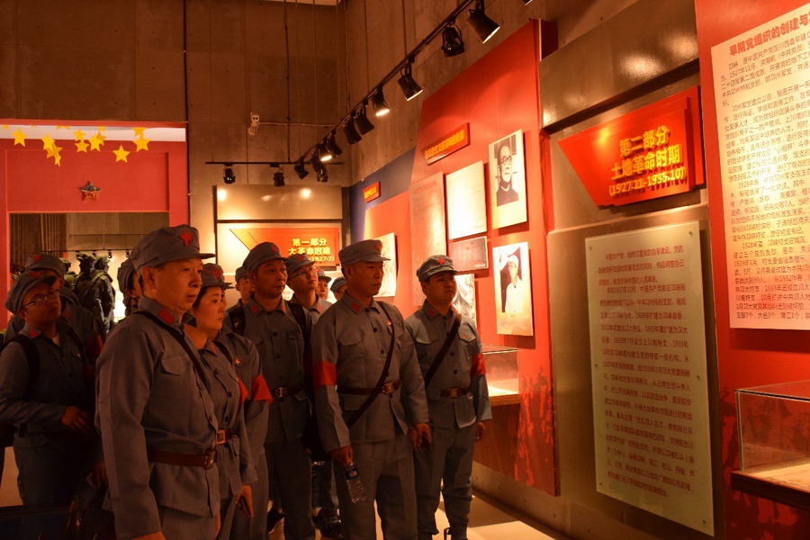 全体着装完成后,大家整齐列队于红军纪念墙前用庄严肃穆的默哀仪式和高亢激昂的入党誓词向先烈们表达了深切的怀念和崇高的敬意。随后在导游的带领下列队参观了红军文物陈列馆。通过馆藏的300余件历史文献、资料、图表和100多件实物与展板的丰富内容,形象直观地再现了红军的光辉足迹。